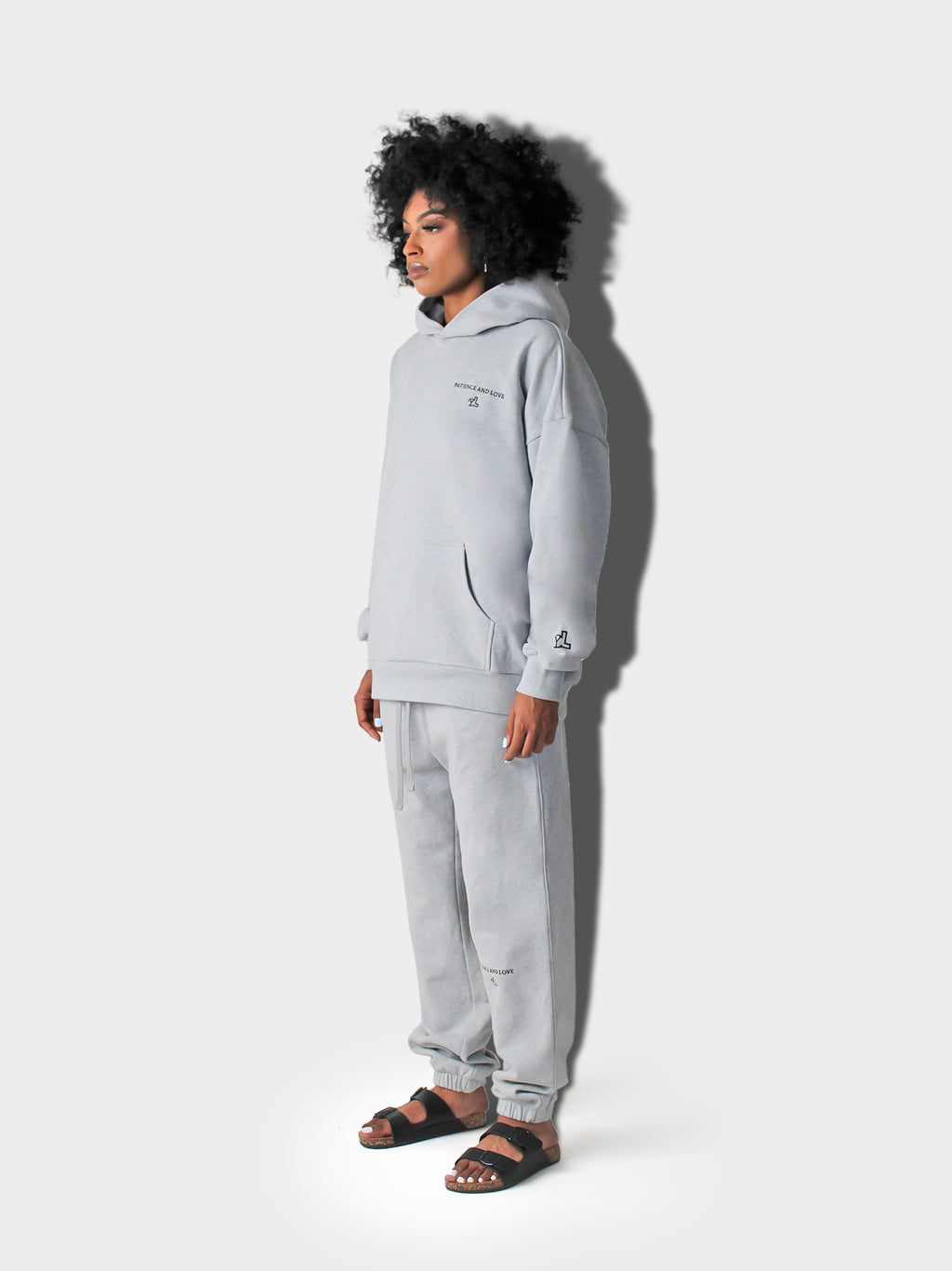 Take it out & about in the Patience Grey YVES Hoodie, our forward, street-ready look for she. Made from thick, heavyweight Cotton, this oversized hoodie features a structured hood & kangaroo pocket for on-the-go convenience and cuffs at the sleeves and waistband.